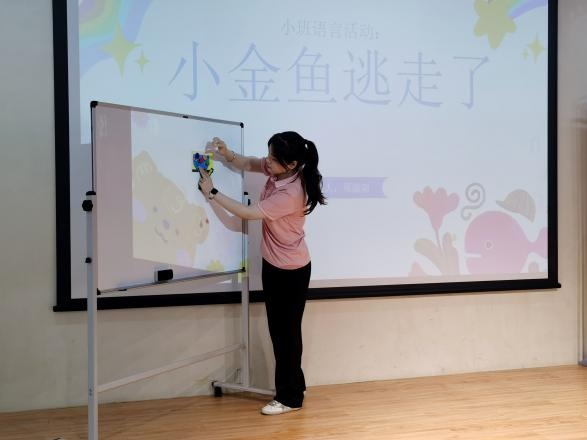 大賽的教學(xué)活動設(shè)計涵蓋小、中、大三個年齡段,包括語言、科學(xué)、藝術(shù)、社會等多個領(lǐng)域。其中,鄒詩瑤同學(xué)帶來的中班語言活動《小熊的尾巴》,課件制作生動有趣,通過局部猜動物,制造懸念,加以音頻輔助,多感官結(jié)合提升了呈現(xiàn)效果。周淑陽同學(xué)的小班語言活動《小金魚逃走了》,師幼互動環(huán)節(jié)豐富精彩,充分調(diào)動了幼兒活動興趣。