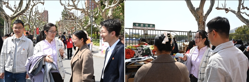 學(xué)生工作部(處)副部(處)長、學(xué)生資助管理中心主任趙樂,來到學(xué)前攤位了解愛心義賣的籌備和義賣情況。