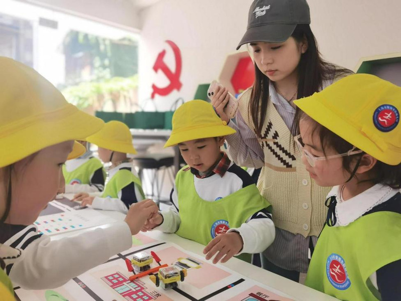學(xué)院以學(xué)前兒童發(fā)展與教育研究中心研發(fā)的學(xué)前兒童社會(huì)與情緒活動(dòng)項(xiàng)目為載體,帶領(lǐng)幼兒走進(jìn)嘟嘟機(jī)器人編程課堂,激發(fā)了幼兒的好奇心和求知欲,展現(xiàn)了“高校+幼兒園”共建互融的優(yōu)勢(shì)。在課堂中,學(xué)院研究生志愿者先進(jìn)行了簡(jiǎn)單講解,然后引導(dǎo)幼兒觀察各式各樣、形態(tài)迥異的機(jī)器人在地圖上的行走路線和前進(jìn)方式,鼓勵(lì)他們展開討論和交流。針對(duì)幼兒的疑惑,志愿者一一耐心解答。觀察和互動(dòng)進(jìn)一步激發(fā)了幼兒對(duì)科技持續(xù)探索的熱情與激情,培養(yǎng)和鍛煉了幼兒的邏輯思維能力和創(chuàng)造力。