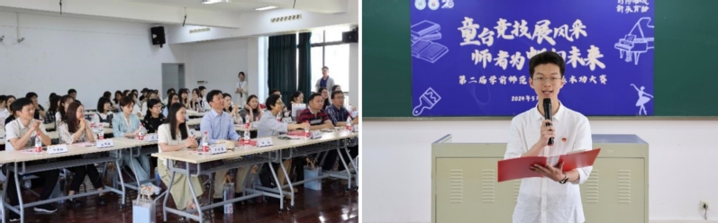 學(xué)院特色社團小蜜蜂劇團帶來開場合唱表演《奉獻》,充分彰顯了學(xué)前青年的青春風(fēng)采,也展現(xiàn)了學(xué)前學(xué)子樂教愛生、甘于奉獻的仁愛之心;決賽選手代表編排的《薪火承師道 善育鑄未來》詩朗誦,表達了學(xué)前學(xué)子涵養(yǎng)師德情懷、傳承師道永恒,立志“躬耕教壇,強國有我”的決心。