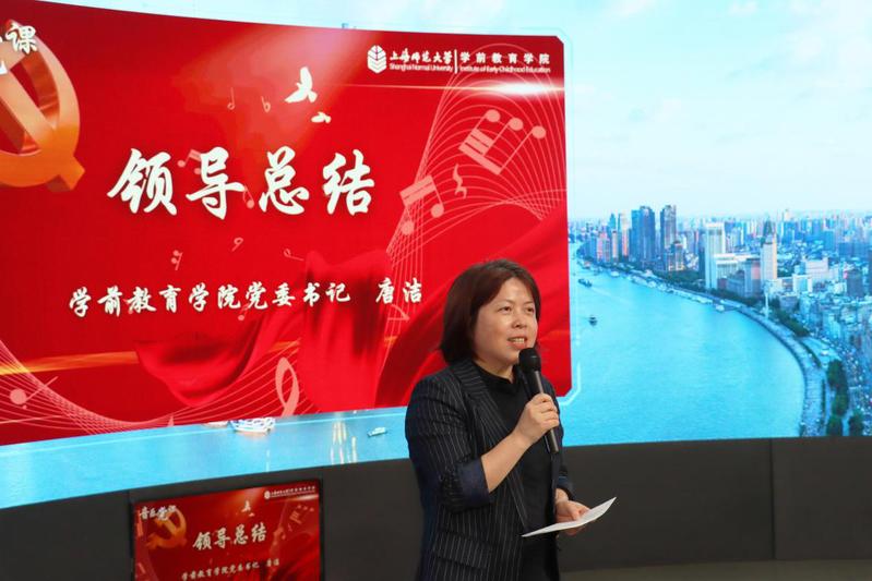 學(xué)院黨委書(shū)記唐潔進(jìn)行了總結(jié)發(fā)言,充分肯定了教工第一黨支部黨員教師發(fā)揮藝術(shù)教育專(zhuān)長(zhǎng)、組織師生開(kāi)展的音樂(lè)黨課,也希望各支部在黨日活動(dòng)中進(jìn)一步探索黨建與業(yè)務(wù)深度融合,進(jìn)行更多富有成效的探索和創(chuàng)新。她向全體黨員傳達(dá)了上海師范大學(xué)第八次黨代會(huì)確定的未來(lái)五年的發(fā)展目標(biāo),號(hào)召師生黨員將思想統(tǒng)一到學(xué)校黨代會(huì)精神上來(lái),更好圍繞“基礎(chǔ)教育基點(diǎn)”和“高等教育龍頭”的雙重使命,凝心聚力,砥礪奮進(jìn),在全面開(kāi)啟建設(shè)教師教育領(lǐng)先的創(chuàng)新型高水平大學(xué)的新征程上交出kaiyun體育登錄網(wǎng)頁(yè)入口的一份答卷。