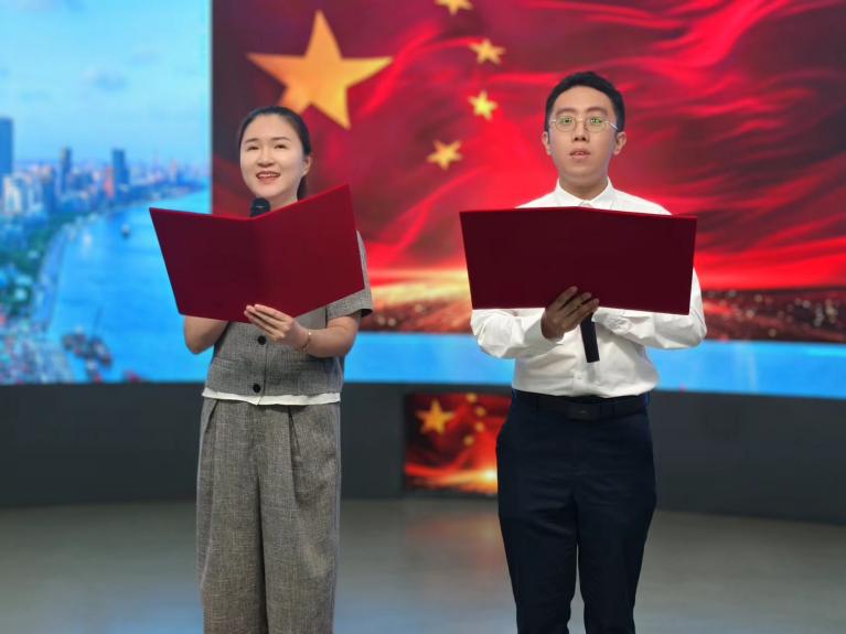 第五部分——不忘初心,欣賞了岑璐老師和游珽鈞老師的配樂(lè)詩(shī)朗誦《不忘初心砥礪行》,慷慨激昂的詩(shī)朗誦,展現(xiàn)了全國(guó)人民在中國(guó)共產(chǎn)黨的領(lǐng)導(dǎo)下砥礪前行的偉大征程。