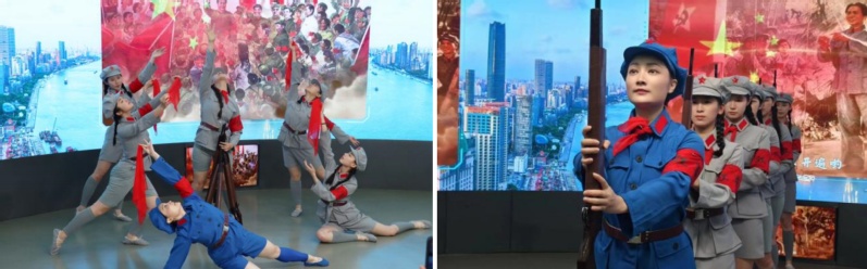 在第二部分——苦難與輝煌中,大家欣賞了吳珺老師創(chuàng)作的舞蹈《映山紅》。歌曲采用通俗易懂的語(yǔ)言和柔美細(xì)膩的旋律,唱出了蘇區(qū)人民盼望紅軍歸來(lái)的強(qiáng)烈心聲,以及與黑暗勢(shì)力殊死搏斗的革命意志。通過(guò)音樂(lè)與舞蹈的有機(jī)結(jié)合,節(jié)奏和旋律的相互呼應(yīng),使得整個(gè)表演更加富有層次和情感。