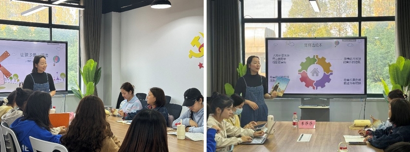 在第一期培訓中,李莎莎老師通過互動提問引導志愿者們分享對繪本的認識,并巧妙引出活動主題——繪本的構成與閱讀知識。她以繪本《煙花》和《爺爺總會有辦法》為例,探討圖文關系及挑選繪本的技巧,強調內容需貼近幼兒生活并符合幼兒最近發(fā)展區(qū)。隨后,李老師結合“繪本+”的多元課程模式,啟發(fā)大家如何開展讀后拓展活動,如手工、畫畫等。最后,她總結“大帶小”“悅”讀核心理念,強調在“玩”中提升認知能力。本次培訓讓志愿者們深入了解繪本及其拓展應用,為后續(xù)活動奠定了扎實基礎。