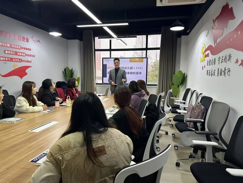 為深入落實學校關于促進畢業(yè)生高質量就業(yè)的工作要求,進一步加強學院與用人單位的合作對接,拓寬學生的就業(yè)渠道和職業(yè)發(fā)展空間,3月12日,上海浦東宜悅幼兒園(Angel Joy Academy)前來我院召開招聘宣講會。出席本次活動的是我院本科生畢業(yè)班輔導員王丹娜、2025屆本科及碩士畢業(yè)生、AJA幼兒園創(chuàng)辦者雷禮和嘉禾陽光幼兒園園長秦毅。