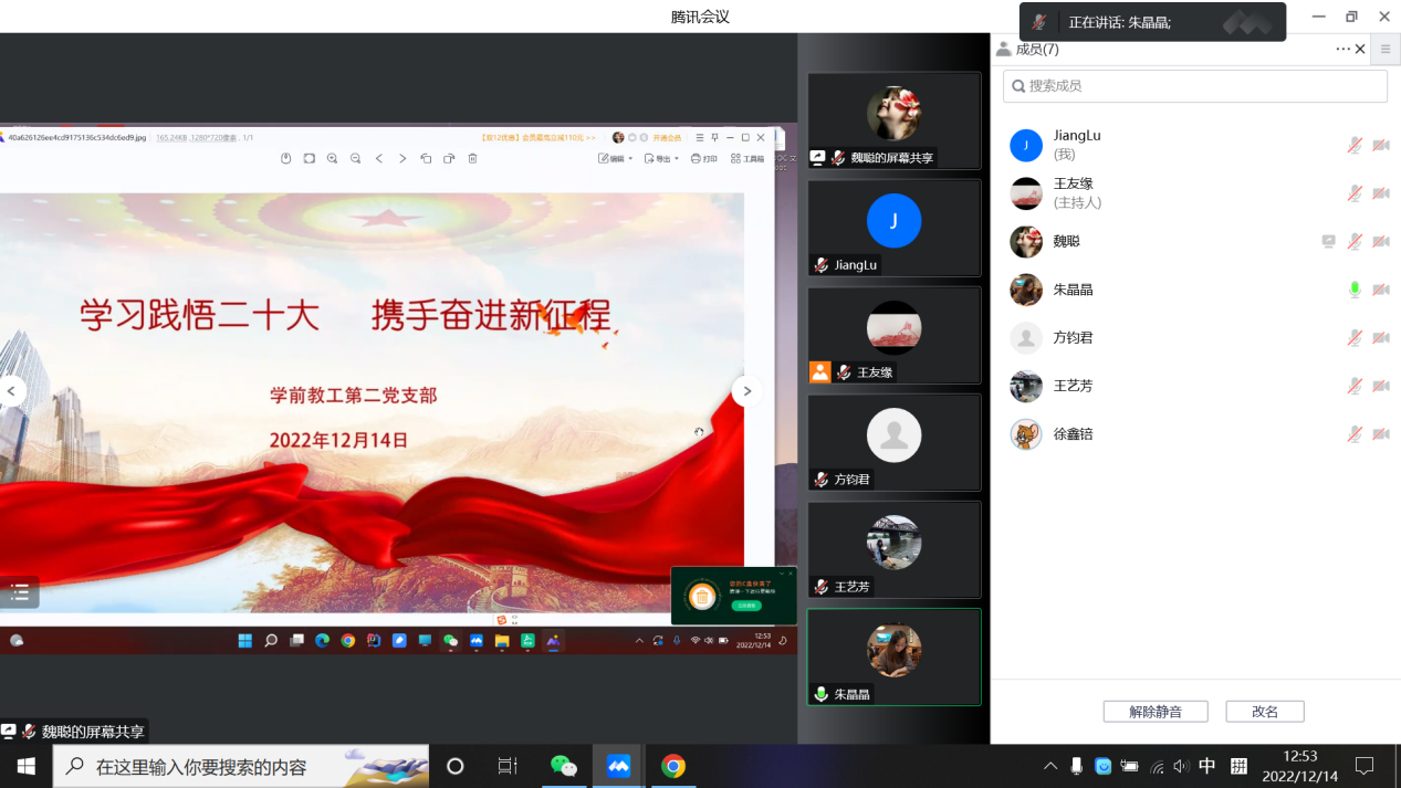 2022年12月14日,kaiyun體育登錄網(wǎng)頁入口教工第二黨支部召開主題黨日活動(dòng),主題為:學(xué)習(xí)踐悟二十大 攜手奮進(jìn)新征程,會(huì)議由王友緣書記主持。首先進(jìn)行相關(guān)內(nèi)容的學(xué)習(xí),之后各位黨員老師結(jié)合自身工作和學(xué)習(xí)講述自己的感受和認(rèn)識(shí)。