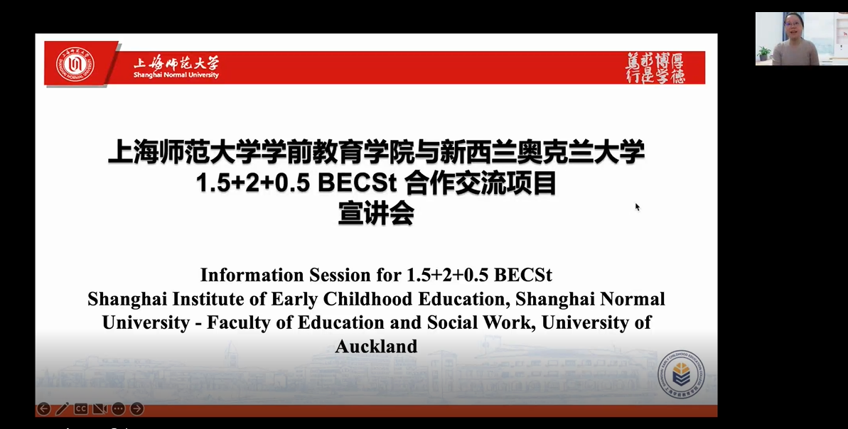 隨后,奧克蘭大學校方代表Amita Gejji女士介紹了奧克蘭大學(University of Auckland)概況以及本次合作辦學項目。Amita Gejji女士表示奧克蘭大學學前教育專業(yè)處于新西蘭領先地位,擁有專業(yè)教授和教師團隊,其學院非常認可上海師范大學學前教育專業(yè)的課程設置,并非常期待落實本次合作辦學項目。最后,Amita Gejji女士介紹了新西蘭的生活環(huán)境以及奧克蘭大學為國際學生提供的服務,并表示非常歡迎本院學生前往奧克蘭大學學習。