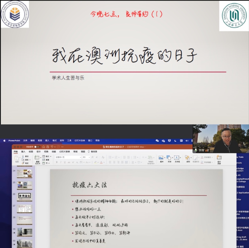 首場良師有約“云”端相伴活動邀請到的是kaiyun體育登錄網(wǎng)頁入口講座教授、博士生導(dǎo)師、香港大學(xué)教育學(xué)院終身教授李輝。李輝教授以“學(xué)術(shù)人生苦與樂:我在澳洲抗疫的日子” 為主題,為同學(xué)們講述了他在澳洲任教期間經(jīng)歷的抗疫故事。長期的居家隔離生活讓他更加明白家人的意義和自由的可貴,逐漸形成了高度自律的習(xí)慣。隔離期間,他堅(jiān)持思考和寫作,基于生活實(shí)踐發(fā)展探索性創(chuàng)新思維,在完成防疫任務(wù)的同時(shí),也迎來自己人生的學(xué)術(shù)高產(chǎn)期。面對此次疫情中同學(xué)們普遍存在的心理焦慮問題,李輝教授用親身經(jīng)歷總結(jié)了“抗議六大法”,即保持樂觀的精神面貌、享受美食帶來的愉悅心情、堅(jiān)持因地制宜的運(yùn)動、培養(yǎng)廣泛的興趣愛好、多動筆頭進(jìn)行寫作和善于發(fā)現(xiàn)生活中的真善美,以此鼓勵(lì)居家居寢的學(xué)生積極調(diào)試和保持樂觀積極的心理狀態(tài),緩解疫情帶來的焦慮和壓力,提升應(yīng)對困難挫折的能力。互動提問環(huán)節(jié)里,同學(xué)們就研究方向選擇、學(xué)術(shù)人生思考等問題與李教授展開熱烈討論。現(xiàn)場師生互動交流頻繁。