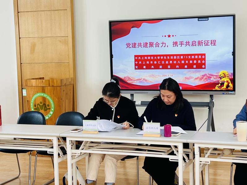 為推動高校理論資源與幼兒園實踐平臺的深度融合,1月14日下午,上海師范大學學生生活園區(qū)第73黨支部和徐匯區(qū)益思幼兒園黨支部開展黨建共建協(xié)議簽約。學生生活園區(qū)第73黨支部全體成員,徐匯區(qū)益思幼兒園黨支部成員、入黨積極分子、入黨申請人共同參加,雙方依托“大帶小”繪本閱讀項目,共繪學前教育高質量發(fā)展新圖景。